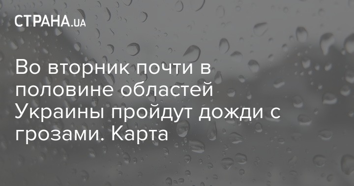 Во вторник почти в половине областей Украины пройдут дожди с грозами. Карта