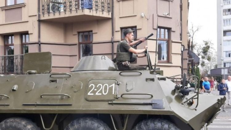 В связи с захватом автобуса в Луцке в центр города начали стягивать военную технику, в частности, бронированные транспортно-боевые машины (БТР).