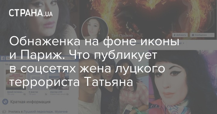 "Страна" нашла в соцсети Facebook страницу жены луцкого террориста Максима Кривоша. Женщину зовут Татьяна. Она подписана как Тати Прохно.