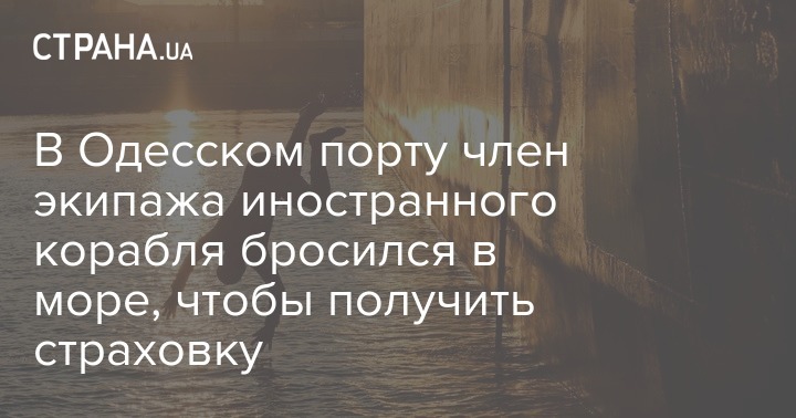 Во вторник, 21 июля, в Одесском порту произошел курьезный инцидент. Моряк с иностранного судна выпрыгнул за борт, чтобы ему выплатили страховку от несчастных случаев.