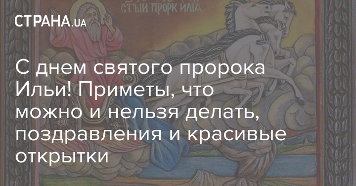 "Страна" рассказывает историю Дня Ильи, традиции этого праздника и народные приметы на 2 августа. Дополнительно мы публикуем молитву святому пророку Илье и раскрываем тайну имени. Еще мы подготовили поздравления и красочные открытки, которыми можно поздравить Илью с днем ангела.