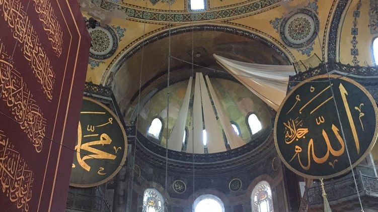 Напомним, в начале июля Эрдоган подписал указ, который превращает собор Святой Софии в мечеть. Вместе с тем соглашение о музейном статусе собора от 1934 года было аннулировано.