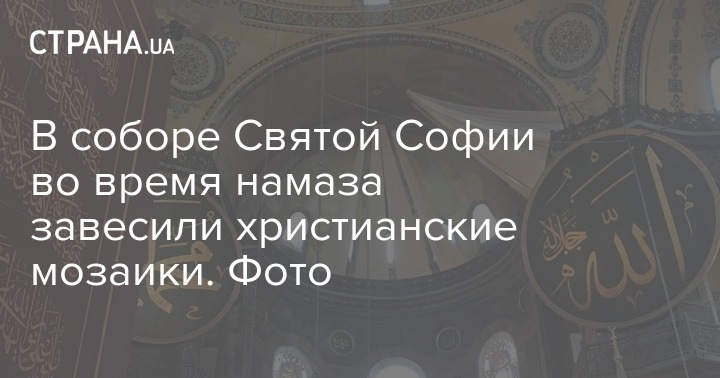 В соборе Святой Софии в Стамбуле, где сегодня прошел первый за 86 лет намаз, были закрыты шторами христианские мозаики по его окончании.