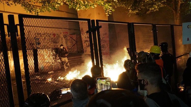 Протесты в Портленде продолжаются уже более 50 дней. За последние сутки столкновения обострились после того, как протестующие начали расшатывать ограду здания суда, перебрасывать на его территорию петарды и зажигательные смеси.