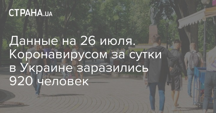 По состоянию на утро воскресенья, 26 июля, коронавирус подтвердился еще у 920 граждан Украины. Общее число заболевших достигло 64 849 человек.