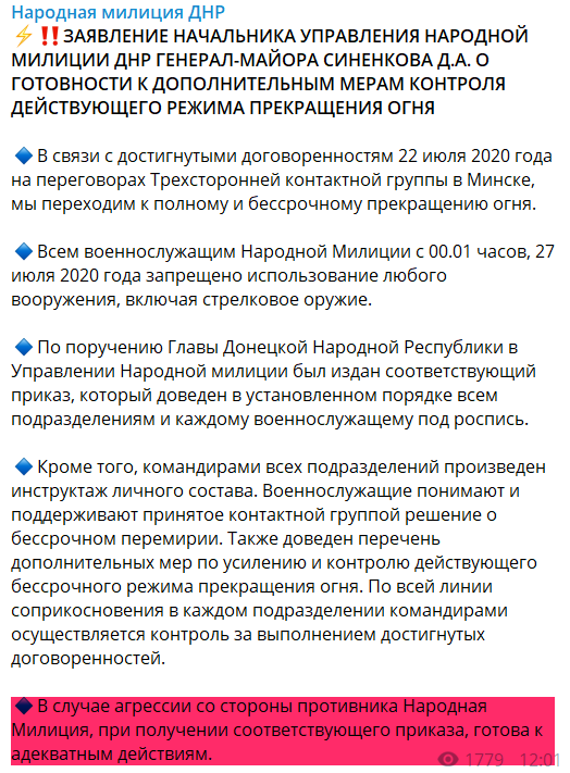 То есть примерно половину сообщения о перемирии Генштаб посвятил предупреждениям о готовности воевать. Что уже очень показательно.