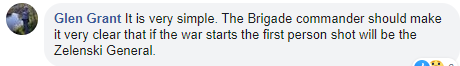 "Командир бригады должен четко дать понять, что, если начнется война, первым убитым будет генерал от Зеленского (который приехал контролировать остановку огня - Ред.)", - пишет британский военный эксперт Глен Грант, который участвовал в реформировании Минобороны при Порошенко.