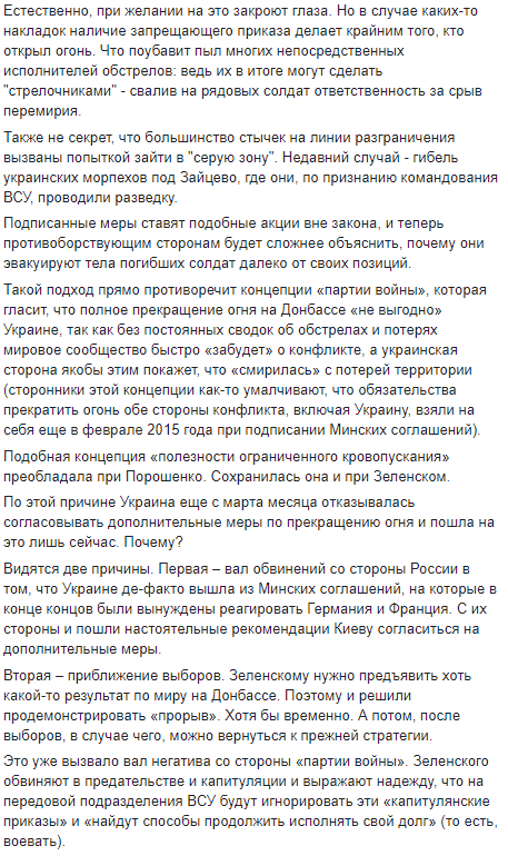 И, видимо, на этот раз есть шансы, что интенсивность боев действительно упадет - пусть даже и на ограниченное время. Что и вызывает резкое недовольство сторонников продолжения конфликта на Донбассе.