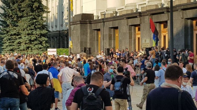 Если в начале акции перед Офисом Зеленского было около ста человек, то сейчас на Банковой уже не меньше 800 митингющих.