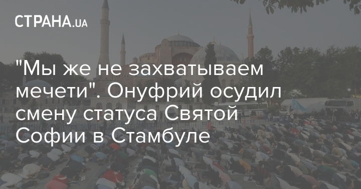 Предстоятель Украинской православной церкви митрополит Онуфрий негативно отреагировал на присвоение храму Святой Софии в Турции статуса мечети.