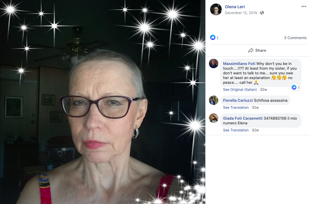 Под обновленным уже после возвращения в Украину фото профиля Лери оставил свой комментарий сын убитого итальянца Массимилиано: "Почему не выходите на связь? Если не хотите говорить со мной, то хотя бы с моей сестрой. Думаю, вы обязаны объясниться. Позвоните".