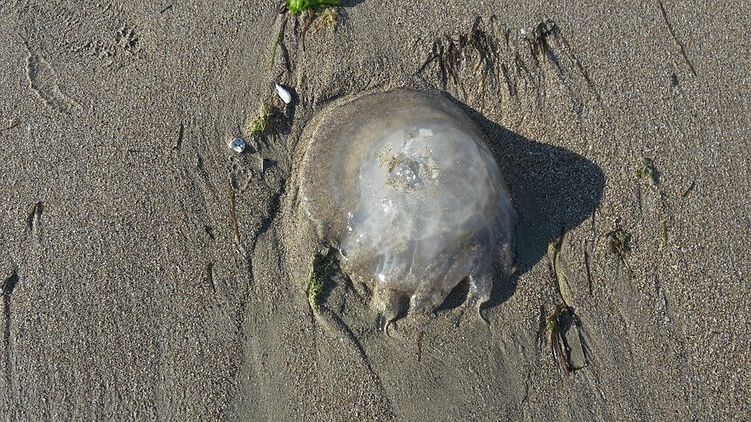 Побережье Азовского моря заполнили медузы. Возле Мариуполя они встречаются время от времени, а вот Бердянские пляжи после недавнего шторма полны морских обитателей.