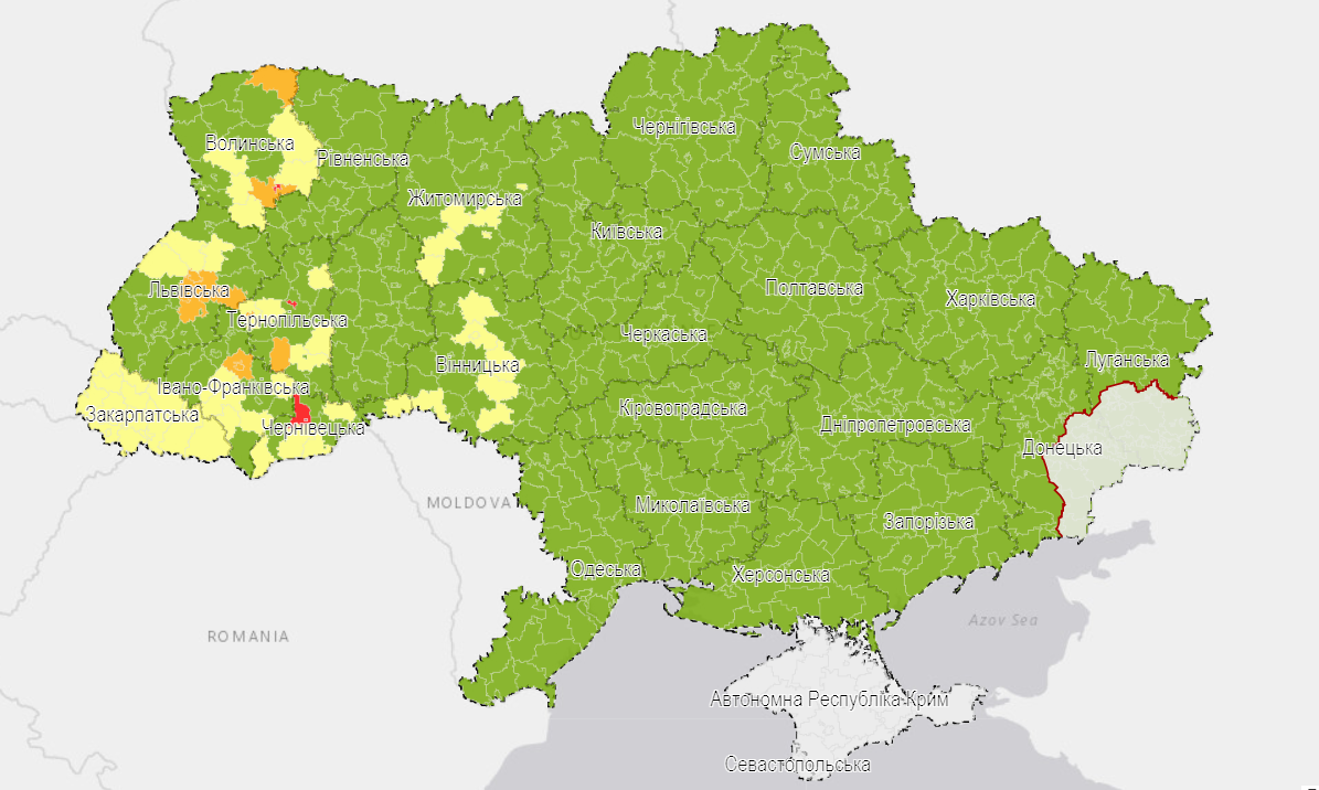С 1 августа Украину разделили на четыре зоны, и несколько районов на западе оказались в "красной зоне", то есть самой опасной. Это села на Тернопольщине, Волыни и в Черновицкой области.