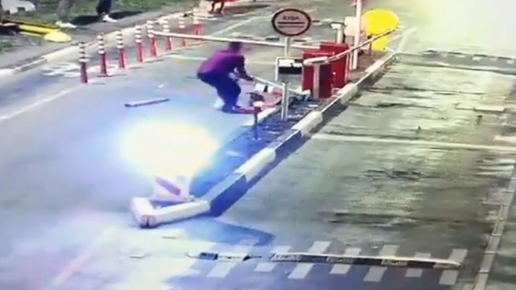 Кличко из-за сломанного шлагбаума принялся "перевоспитывать" нового вандала. Видео