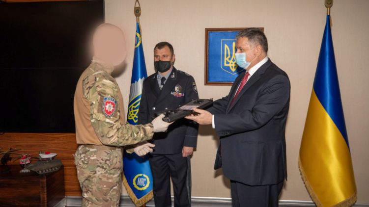 Глава МВД Арсен Аваков вручил наградное оружие четырем правоохранителям, которые участвовали в спецоперации по задержанию и обезвреживанию "полтавского террориста" Романа Скрипника.