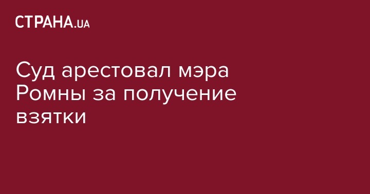 Мэр города Ромны, который ранее попался на взятке, по решению суда арестован с возможностью залога в 145,5 тыс грн. Таким образом суд удовлетворил ходатайство военной прокуратуры Сумского гарнизона Центрального региона Украины.