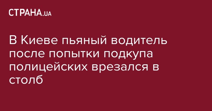 В Киеве пьяный водитель после попытки подкупа полицейских врезался в столб