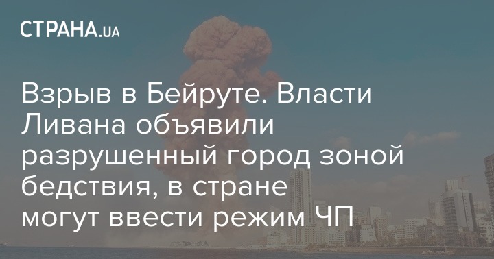 Взрыв в Бейруте. Власти Ливана объявили разрушенный город зоной бедствия, в стране могут ввести режим ЧП