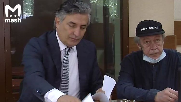 Михаил Ефремов с адвокатом Эльманом Пашаевым в суде 5 августа. Скриншот с видео
