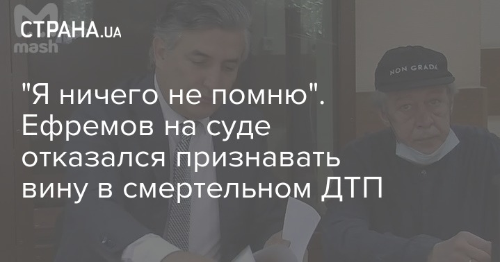 Обвиняемый в смертельном ДТП российский актер Михаил Ефремов во время сегодняшнего заседания суда заявил, что не признает свою вину по предъявленному обвинению, поскольку ничего не помнит. Об этом сообщаю российские СМИ.