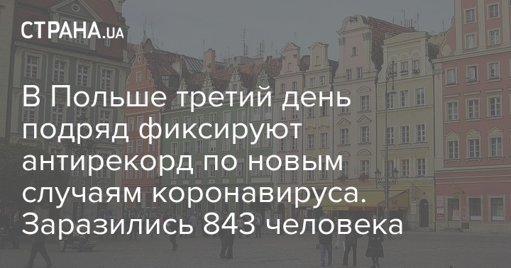 В Польше третий день подряд фиксируют антирекорд по новым случаям коронавируса. Заразились 843 человека