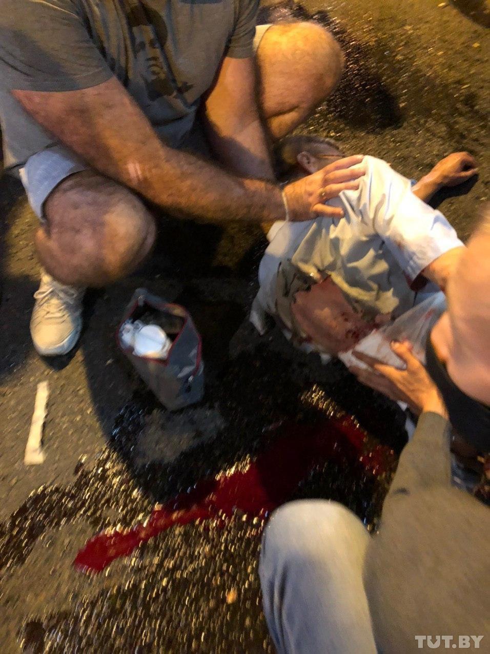 23:35 Один из участников на проспекте Пушкина получил травму головы в результата разрыва шумовой гранаты. Первую помощь ему оказывали сами протестующие - передает "Спутник Беларусь".