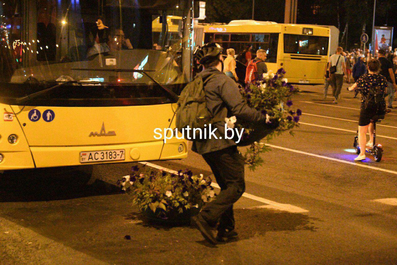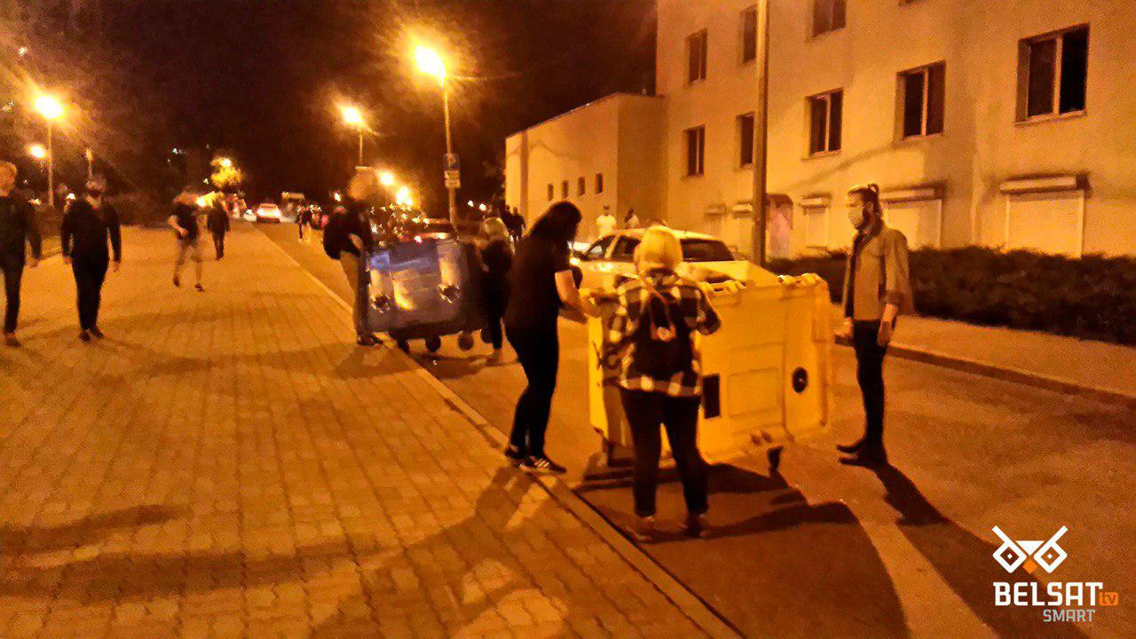 22:40 Минск, протестующие пытаются соорудить баррикады на улице Притыцкого по направлению от центра: установили три пластиковых мусорных бака, вазоны с цветами.