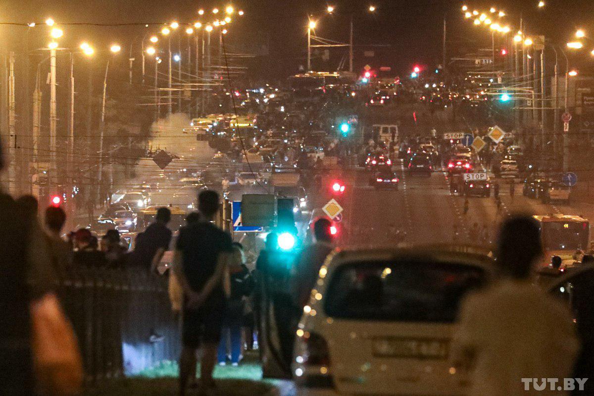 Основной "движ" происходит в Минске. Здесь несколько очагов столкновений. Слезоточивый газ применяли против активистов на Кальварийской площади (там ввели в действие армейский спецназ), точечные задержания идут на проспекте Победителей, где протестующие перекрыли дорогу, и у Дворца Независимости (ТЦ "Галерея").