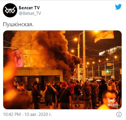 01:16 Из Беларуси продолжают поступать сообщения о протестах. Сообщают, что в Минске возле универсама "Рига" подожгли покрышки.