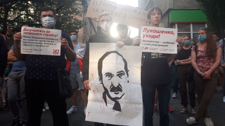 Под посольством Беларуси в Киеве зажгли файеры и требовали отставки Лукашенко. Одним из задержанных был крымчанин Александр Кольченко, который участвовал в большом обмене заключенными.