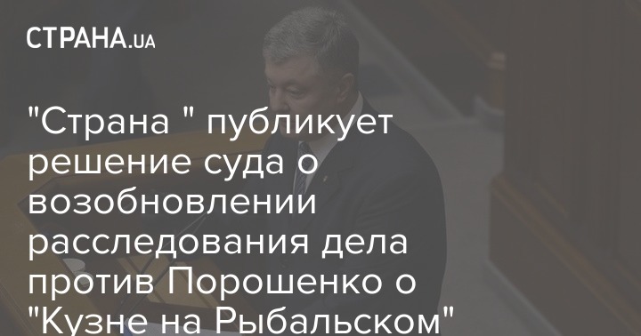 Появилось решение Печерского суда о возобновлении расследования дела против Порошенко о "Кузне на Рыбальском". Скан: Страна