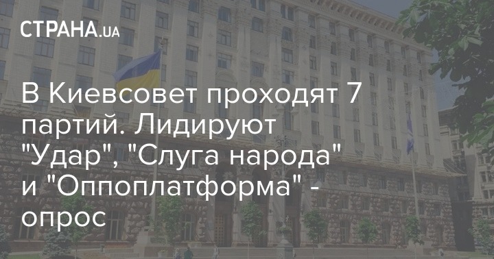 Если бы в ближайшее время состоялись бы местные выборы, в Киевсовет прошли бы 7 партий. Больше всего набрали бы "Удар" Виталия Кличко, "Слуга народа" и "Оппозиционная платформа - За жизнь".