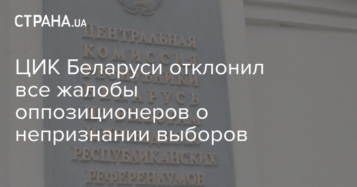 Центральная избирательная комиссия Беларуси отклонила жалобы о непризнании выборов от кандидатов в президенты Светланы Тихановской, Андрея Дмитриева и Анны Канопацкой. Еще один претендент на пост главы республики не смог подать жалобу в ЦИК.