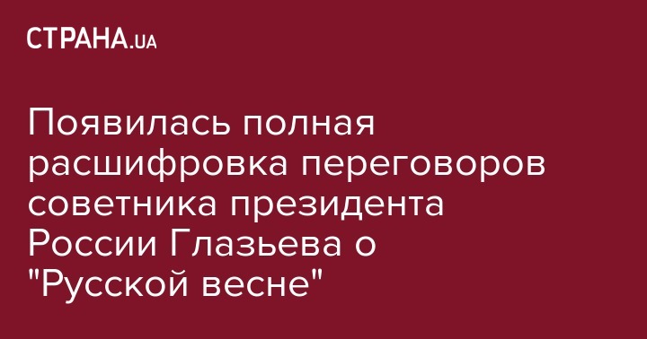 Телефонные записи переговоров советника президента России Сергея Глазьева по ситуации в Украине, датированные февралем-мартом 2014 года были обнародованы Генеральной прокуратурой Украины. "Страна" публикует их полную текстовую расшифровку в редакции издания "Медуза".