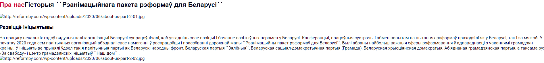 Кстати, кто они – вопрос интересный. На сайте reformby.com (точнее, в доступной кэш-версии) говорится, что "материалы сайта созданы на основе документов платформы "Реанимационный пакет реформ для Беларуси".
