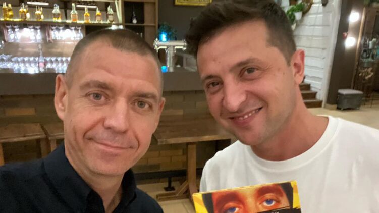 Президент Украины Владимир Зеленский в ходе поездки в Запорожье, где казак саблей разрубил огурец на его ладони, встретился с лидером групп "Ляпис-98" и Brutto Сергеем Михалком.