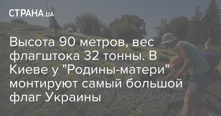 Высота 90 метров, вес флагштока 32 тонны. В Киеве у "Родины-матери" монтируют самый большой флаг Украины