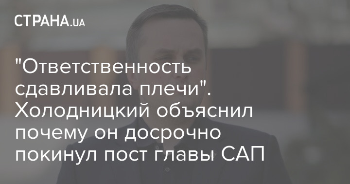 Напомним, "Страна" писала о том, что Холодницкий 21 августа объявил, что досрочно покидает должность главы САП.