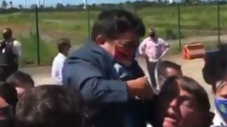 Во время поездки в штат на востоке Бразилии Сержипи президент страны Жаир Болсонару попал в неловкую ситуацию. Он поднял на руки взрослого мужчину, которого принял за ребенка.
