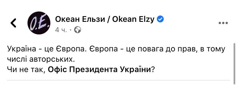 "Украина - это Европа. Европа - это уважение к правам, в том числе авторским. Не так ли, Офис президента Украины"?.
