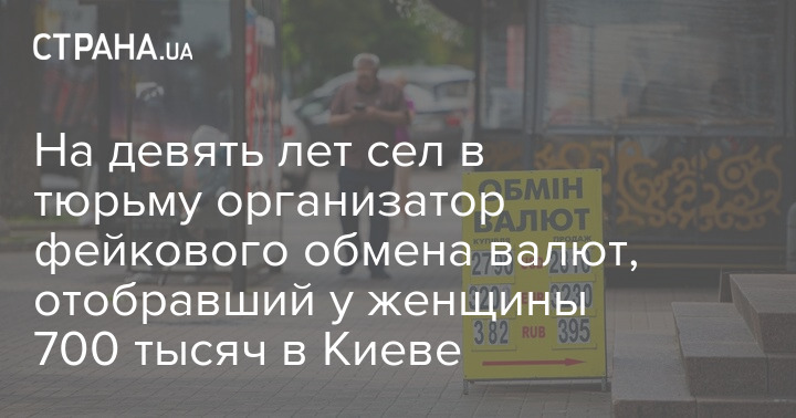 В Киеве разоблачили и задержали организатора фиктивного пункта обмена валют. Это случилось после того, как он отобрал у женщины 700 000 гривен. Его приговорили к девяти годам лишения свободы с конфискацией имущества.