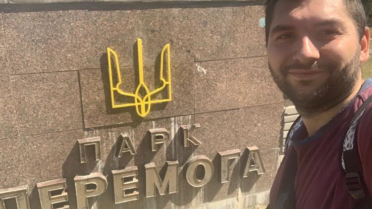 Участник боевых действий на Донбассе, житель Киева Алексей Гончарук самостоятельно "декоммунизировал" парк "Победа". Там он заменил советскую символику на самодельный государственный герб Украины.