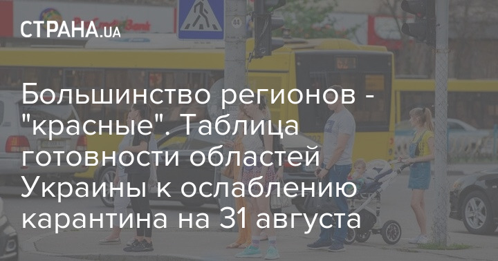 По состоянию на 31 августа в Украине не готовы к ослаблению карантина большинство регионов страны. Так, по данным Министерства здравоохранения, Киев и 16 областей не соответствуют критериям для смягчения карантина.