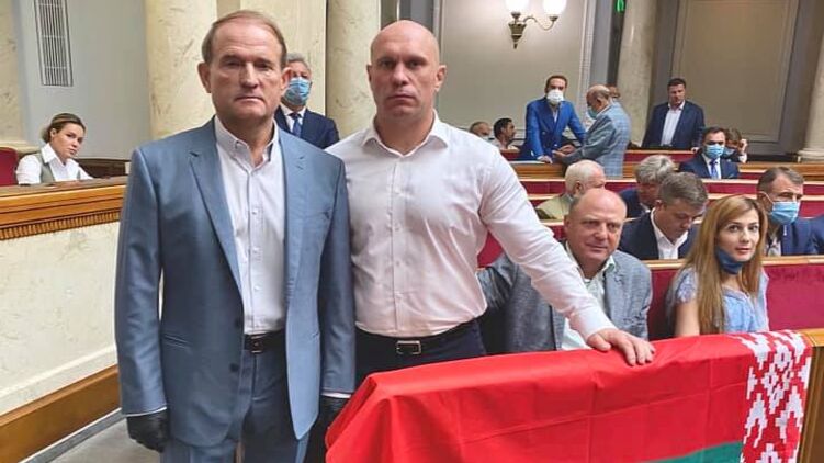 Нардепы от ОПЗЖ принесли в Раду флаг Беларуси. Фото: facebook.com