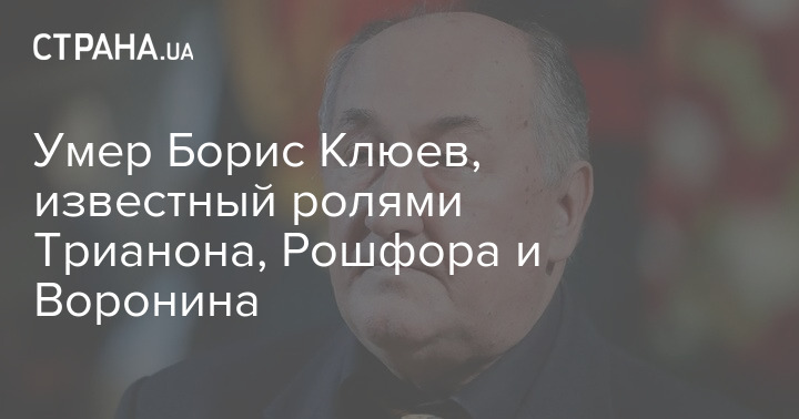 Умер народный артист России, актер театра и кино Борис Клюев. Он наиболее известен по роли Рошфора в "Д’Артаньяне и трех мушкетерах", а также по роли Николая Воронина в сериале "Воронины". Артисту было 76 лет, последнее время он боролся с онкологией.