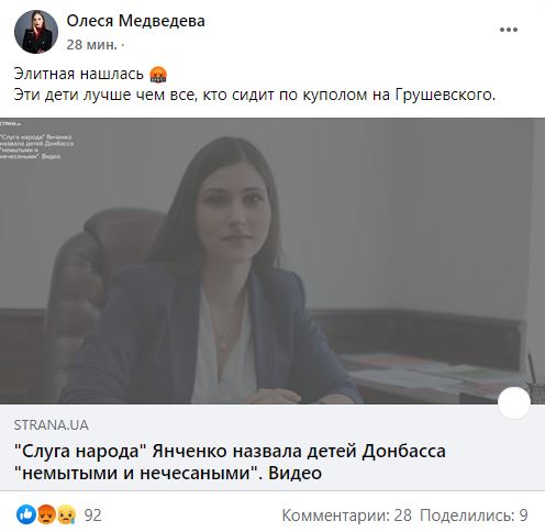 "Помытая и почесанная "слуга" Янченко назвала несовершеннолетних граждан Украины