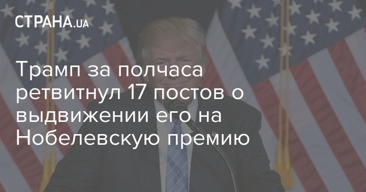 После того, как президента США Дональда Трампа номинировали на Нобелевскую премию мира, он восторженно за полчаса ретвитнул 17 сообщений об этом.