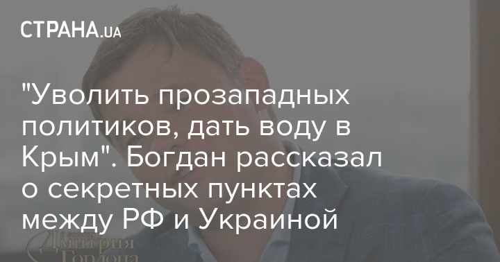 "Уволить прозападных политиков, дать воду в Крым". Богдан рассказал о секретных пунктах между РФ и Украиной