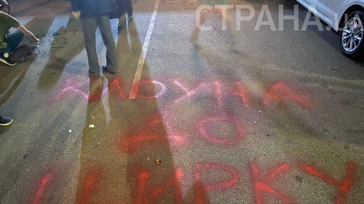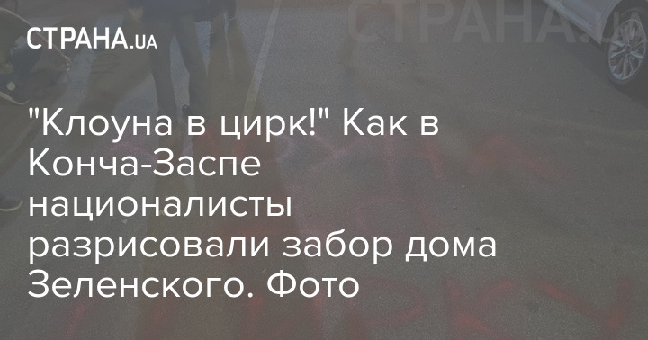 На дороге в Конча-Заспе националисты написали фразу "Клоуна - в цирк". Фото: Страна