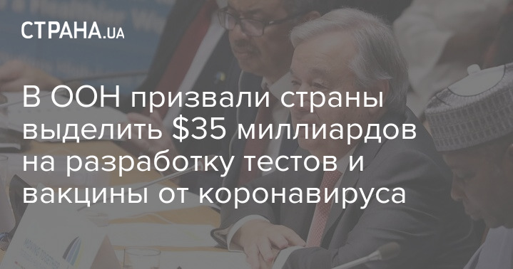 Организация Объединенных Наций призвала международное сообщество выделить 35 миллиардов долларов на медицинские цели. Деньги должны ускорить исследования и разработку тестов и вакцин от коронавируса.
